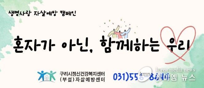 (케이엠뉴스) 구리시는 자살률이 증가하는 3월부터 5월까지를 ‘생명 사랑 자살 예방 집중 홍보 기간’으로 지정하고, 시민의 소중한 생명을 보호하기 위한 예방 활동을 적극 추진하고 있다고 밝혔다.