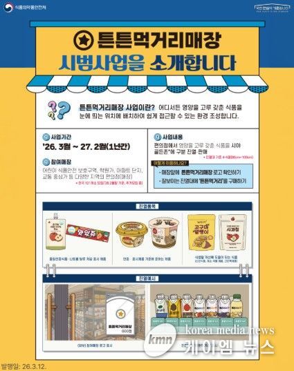 한편, ‘튼튼먹거리 매장’ 위치는 식품안전나라 누리집 내 ‘우리동네 식품안전정보’ 지도에서 확인할 수 있다.