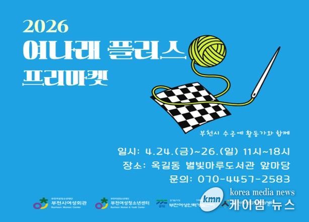 (케이엠뉴스) 부천여성청소년재단이 운영하는 부천시여성회관과 부천여성청소년센터는 오는 4월 24일부터 26일까지 3일간, 옥길동 별빛마루도서관 앞마당에서 지역 여성 수공예 작가들의 작품을 판매하는‘여나래 플러스 프리마켓’을 개최한다.
