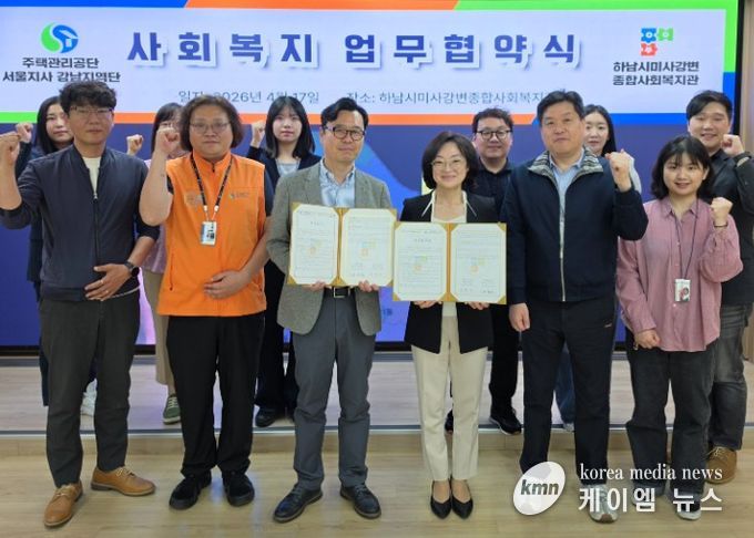 (케이엠뉴스) 하남시미사강변종합사회복지관은 지역 내 취약계층의 생활 안정과 자립 지원을 위해 4월 17일, 주택관리공단 서울지사 강남지역단과 업무협약을 체결했다.