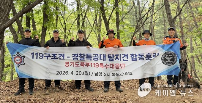 (케이엠뉴스) 경기도북부119특수대응단은 20일 남양주시 복두산 구조견센터 훈련장에서 119구조견과 경찰특공대 탐지견이 참여하는 합동훈련을 실시했다.