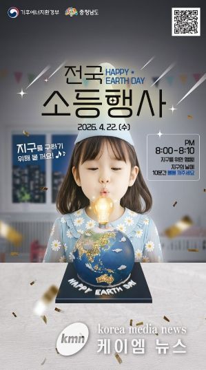 (케이엠뉴스) 충남도는 ‘제56주년 지구의 날’인 오는 22일 밤 8시부터 10분간 공공·민간이 함께 참여하는 소등 행사를 진행한다고 21일 밝혔다.