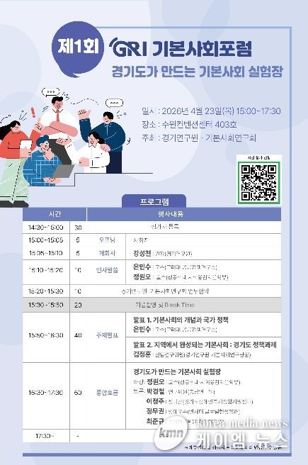 (케이엠뉴스) 경기연구원은 오는 23일 오후 3시 수원컨벤션센터 403호에서 ‘경기도가 만드는 기본사회 실험장’을 주제로 ‘제1회 GRI 기본사회포럼’을 개최한다.