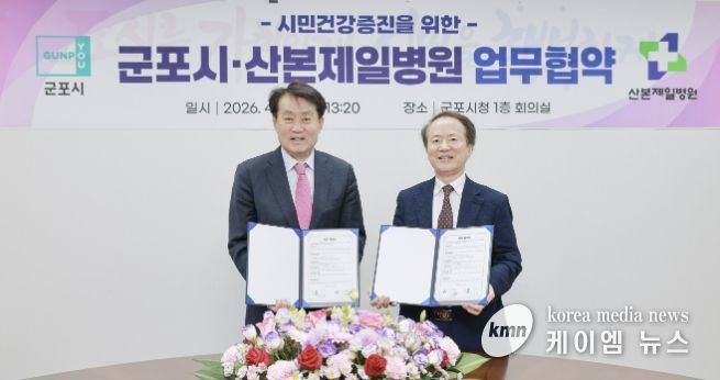 (케이엠뉴스) 군포시는 4월 20일 시청 1층 회의실에서 산본제일병원과 ‘시민 건강증진 및 의료서비스 질 향상을 위한 업무협약(MOU)’을 체결했다.