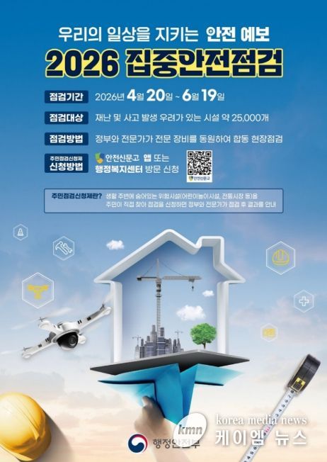 (케이엠뉴스) 파주시는 재난 및 안전사고를 사전에 예방하고 시민들이 안심하고 생활할 수 있는 안전한 환경을 조성하기 위해 녪집중안전점검’을 4월 20일부터 6월 19일까지 실시한다.