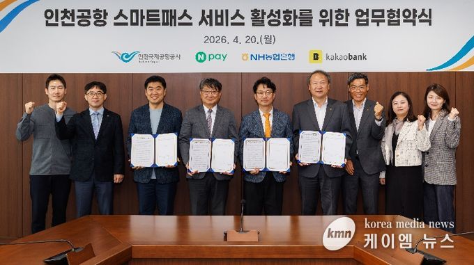 (케이엠뉴스) 인천국제공항공사는 인천공항의 안면인식 출국 서비스인 ‘스마트패스’의 등록 채널을 확대하기 위해 네이버페이, NH농협은행, 카카오뱅크와 ‘스마트패스 서비스 활성화 업무협약’을 체결했다고 21일 밝혔다.