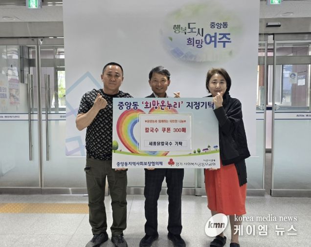 심우봉 중앙동장은 “지역 내 나눔 문화 확산에 동참해주신 세종닭칼국수에 깊이 감사드린다”며 “기부해주신 쿠폰이 꼭 필요한 이웃들에게 전달될 수 있도록 하겠다”고 밝혔다.
