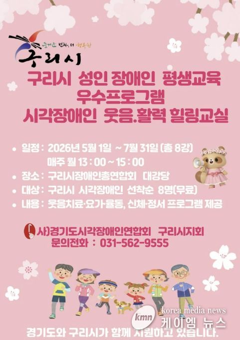 (케이엠뉴스) 사단법인 경기도시각장애인연합회 구리시지회는 구리시와 경기도의 지원을 받아 2026년 5월부터 ‘시각장애인 웃음·활력 힐링 교실’을 운영할 예정이라고 밝혔다.