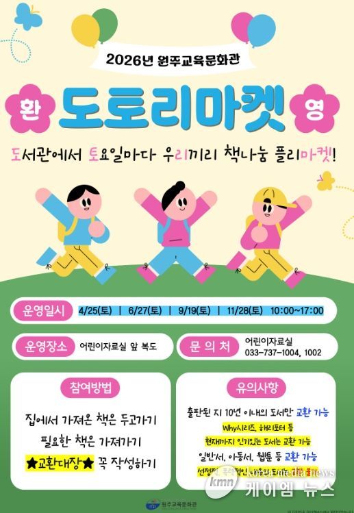 (케이엠뉴스) 원주교육문화관은 4월 25일부터 책나눔 ‘도토리마켓’을 운영한다.