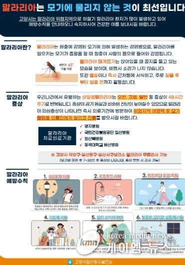 (케이엠뉴스) 고양특례시 일산동구보건소는 오는 25일 세계 말라리아의 날을 맞아 예방수칙을 준수하고 감염을 주의할 것을 21일 당부했다.