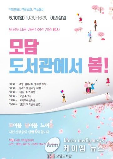 (케이엠뉴스) 김포 최대 규모 공공도서관인 모담도서관이 개관 1주년을 맞아 오는 5월 10일 ‘책과 문화·예술·놀이’가 어우러지는 행사를 연다. 이번 행사는 시민들에게 감사의 마음을 전하고 복합문화공간으로서의 역할을 수행하고자 마련된 것으로, 사전예약 없이 도서관 방문자 누구나 참여 가능하다.
