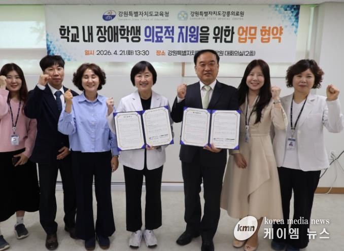 (케이엠뉴스) 강원특별자치도교육청은 4월 21일 13시 30분, 강원특별자치도강릉의료원과 강릉·동해 지역 특수학교 중도장애학생의 학교 내 의료적 지원 강화를 위한 업무협약(MOU)을 체결한다.