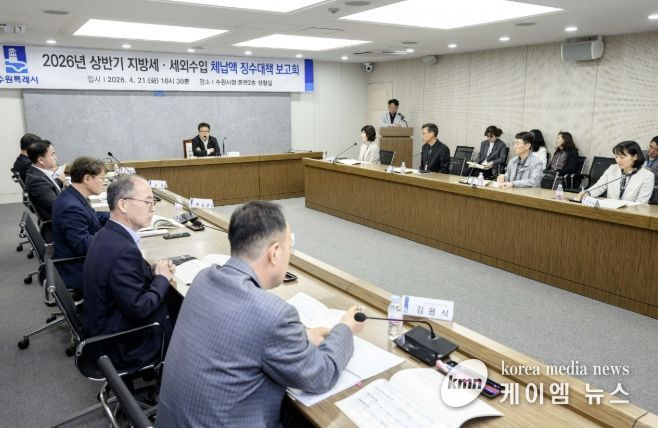 (케이엠뉴스) 수원특례시는 21일 시청 상황실에서 김현수 제1부시장 주재로 상반기 징수대책보고회를 열고, 징수 부서별 징수목표액과 징수 상황을 점검했다.