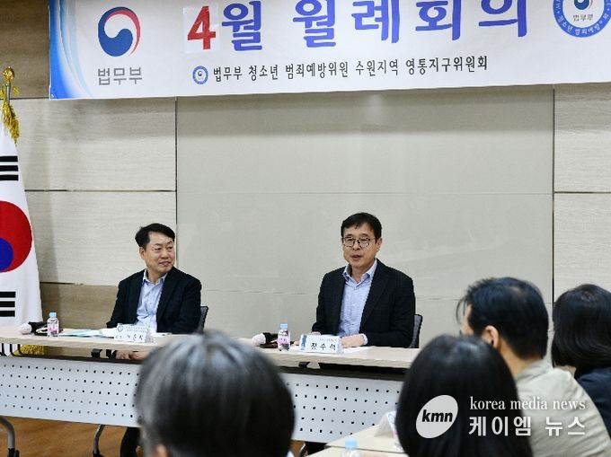 (케이엠뉴스) 수원시 영통구는 지난 21일, 법무부 청소년 범죄예방위원 수원지역 영통지구위원회(이하 ‘범죄예방위원회’) 주관으로 영통구청 상황실에서 4월 월례회의를 개최했다.