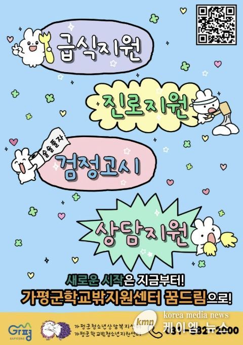 (케이엠뉴스) 가평군학교밖청소년지원센터 학교 밖 청소년들의 건강한 성장과 자립을 돕기 위해 다양한 맞춤형 프로그램 참여자를 모집한다.