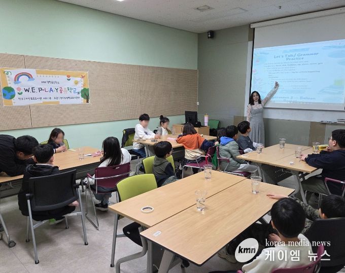 이번 프로그램은 지역 초등학교 3~4학년 학생 16명이 참여한 가운데, 지난 3월 14일부터 4월 18일까지 매주 토요일 총 6회에 걸쳐 지산초록도서관 지하 강의실에서 진행됐다. 학생들은 원어민과 함께하는 한국 전통 놀이, 음식 만들기 및 이국적인 음식 체험, 과학 실험 등 다양한 놀이와 체험을 통해 자연스럽게 영어를 접하며 다른 문화를 이해하고 언어와 비언어적 요소를 경험하는 시간을 가졌다.