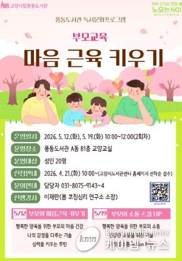 (케이엠뉴스) 고양특례시 풍동도서관은 오는 5월 독서문화 프로그램 ‘부모교육, 마음 근육 키우기’를 진행한다고 22일 밝혔다.