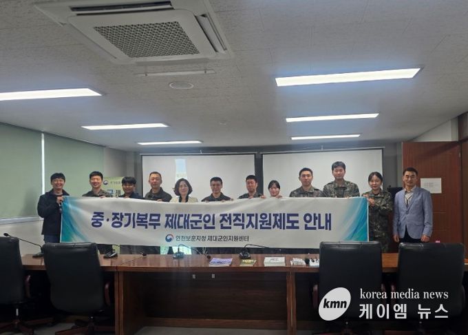 (케이엠뉴스) 국가보훈부 인천보훈지청 제대군인지원센터는 4월 22일 육군 제17보병사단 5년 이상 복무한 중장기복무 전역예정군인을 대상으로 ‘제대군인 전직지원 사업 홍보를 위한 찾아가는 군부대 순회교육’을 실시 했다. ‘찾아가는 군부대 순회교육’은 제대군인지원센터가 각 군부대와의 협조를 통해 교육 접근성과 참여율을 높이기 위해 군부대 내에서 직접 제대예정군인 전직지원제도와 국가보훈제도를 소개하는 프로그램이다.