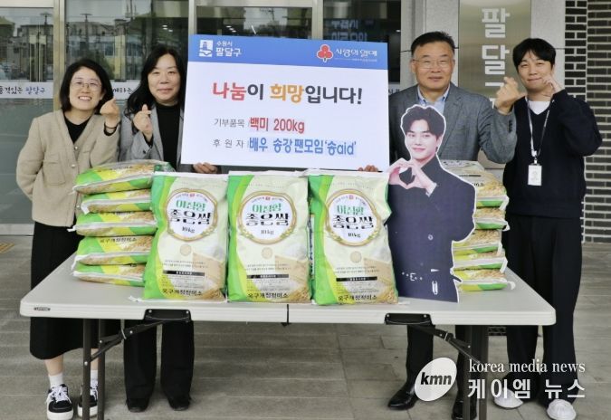 (케이엠뉴스) 수원시 팔달구은 배우 송강 팬모임 ‘송aid’로부터 송강 배우의 생일(4월 23일)을 기념한 사랑의 백미 200kg을 전달받아 관내 취약계층 지원에 나선다고 밝혔다.