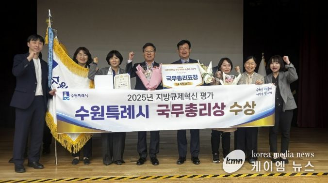 (케이엠뉴스) 수원특례시가 행정안전부 주관 ‘2025년도 지방규제개혁 유공’ 평가에서 규제개혁 성과를 인정받아 국무총리 기관 표창을 받았다. 시상식은 22일 정부세종청사에서 열렸다. 수원시는 개인 표창도 받았다.