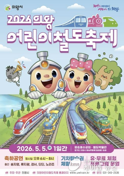 (케이엠뉴스) 의왕시의 대표 축제인 '2026 의왕어린이철도축제'가 어린이날인 5월 5일, 왕송호수공원과 철도박물관 일원에서 화려하게 개최된다.