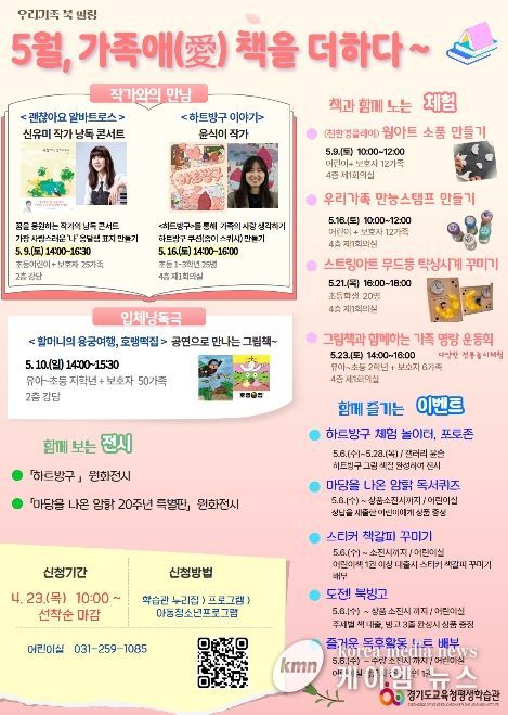 (케이엠뉴스) 경기도교육청평생학습관이 가족 사랑 실천과 가족 간 유대감 증진을 위해 가족 독서체험 행사인 䃵월, 가족애(愛) 책을 더하다’를 운영한다.