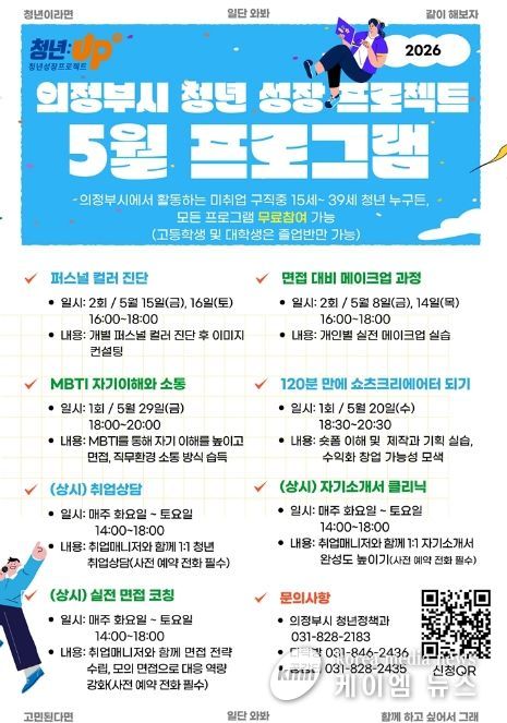 (케이엠뉴스) 의정부시는 미취업 청년의 취업 준비 역량 강화를 위해 ‘청년성장프로젝트’ 5월 프로그램을 운영한다.