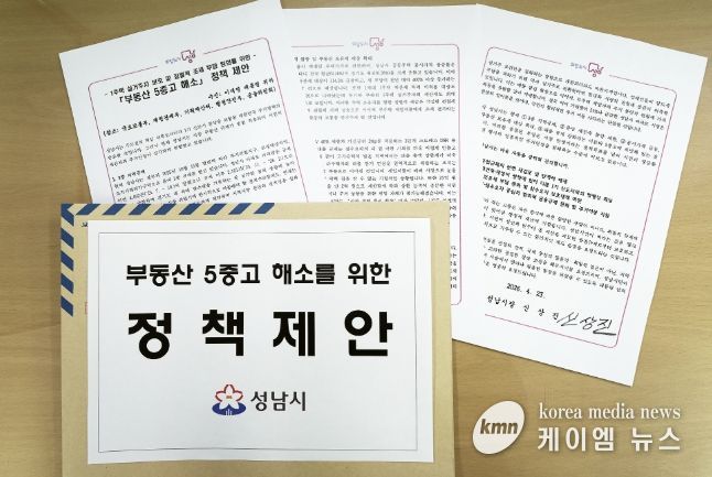 (케이엠뉴스) 성남시는 1주택 실거주자 보호와 과도한 부동산 규제 완화를 위해 이재명 대통령에게 ‘부동산 5중고 해소’를 위한 정책을 제안했다고 밝혔다.