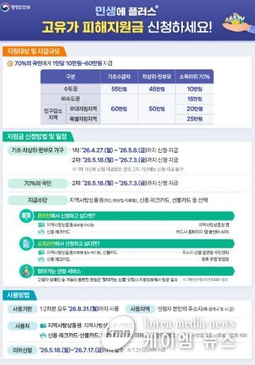 (케이엠뉴스) 김포시가 최근 중동 전쟁 등 대외 경제 불확실성으로 급등한 유가와 물가로 고통받는 시민들을 위해 ‘고유가 피해지원금’ 지급을 시작한다고 밝혔다. 신속한 지원을 위해 기초수급자·차상위계층·한부모가족을 1차로 우선 지급하고 건보료 등을 통해 대상 확정 후 김포시민 70%에게 2차 지급한다.