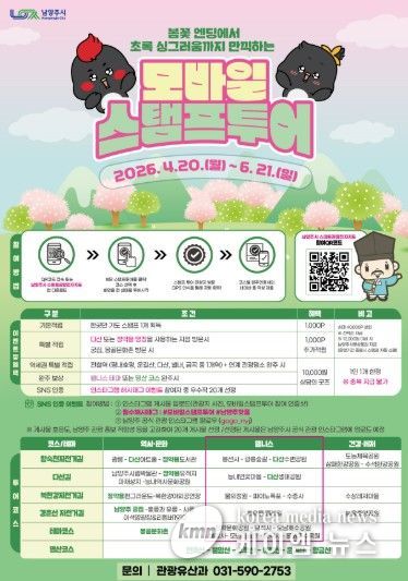 (케이엠뉴스) 남양주시는 역사·힐링·건강·체험을 결합한 ‘2026년 상반기 모바일 스탬프투어’를 오는 6월 21일까지 운영한다고 23일 밝혔다.