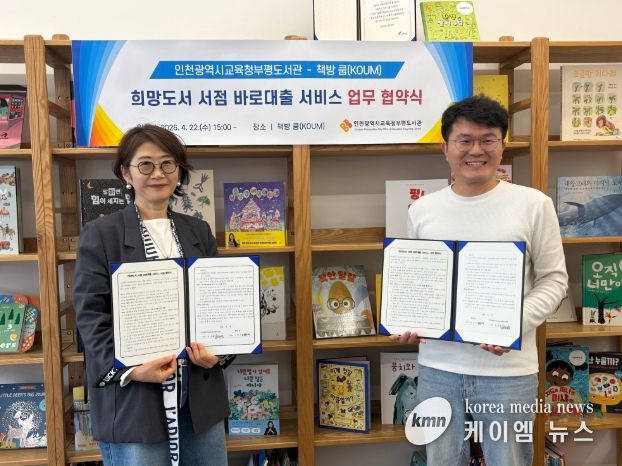 (케이엠뉴스) 인천광역시교육청부평도서관은 지난 22일 '책방 쿰'과 ‘희망도서 서점 바로대출 서비스’ 업무협약을 체결했다.