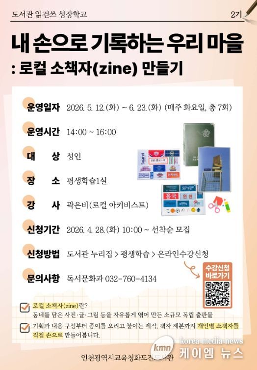 (케이엠뉴스) 인천광역시교육청화도진도서관은 오는 28일부터 지역의 일상을 기록으로 담아내고 공유하는 시민 참여형 프로그램 ‘내 손으로 기록하는 우리 마을’의 참여자를 모집한다.