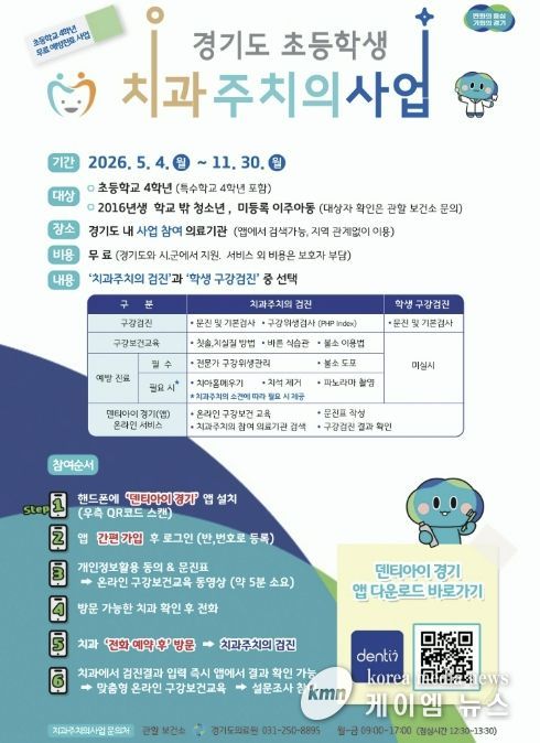 (케이엠뉴스) 포천시보건소는 지역 내 아동의 구강건강 관리를 강화하기 위해 오는 5월 4일부터 11월 30일까지 ‘초등학생 치과주치의사업’을 추진한다.