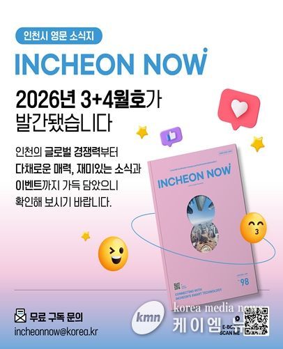 (케이엠뉴스) 인천광역시는 도시의 혁신적인 정책과 차별화된 매력을 전 세계에 소개하는 영문소식지 '인천나우(Incheon Now)' 3·4월호(Vol. 98)를 발간했다고 밝혔다.