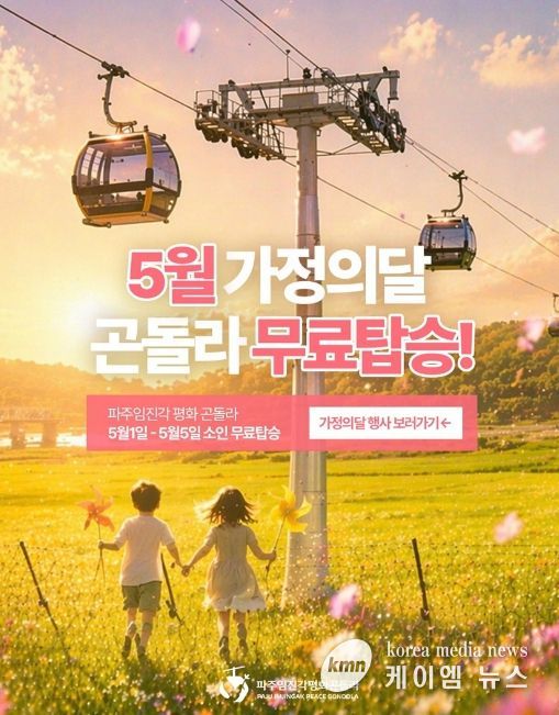 (케이엠뉴스) 파주시는 대표 관광 콘텐츠로 자리 잡은 ‘파주임진각평화곤돌라’에서 5월 가정의 달을 맞아 가족 단위 방문객을 위한 다양한 프로그램을 운영한다고 전했다.