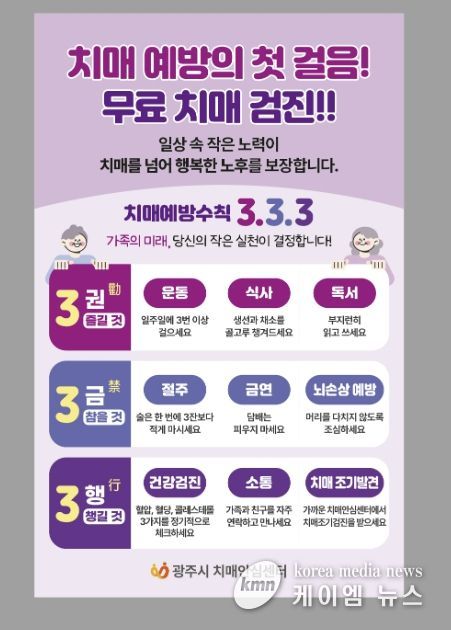 (케이엠뉴스) 광주시치매안심센터는 치매 발병 위험이 높은 고령층을 집중 관리하기 위해 오는 29일부터 30일까지 광주시 스포츠헬스센터에서 ‘치매 조기 검진 및 인식 개선 캠페인’을 실시한다고 27일 밝혔다.