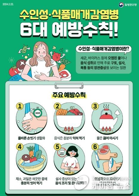 하절기 수인성·식품매개감염병 예방을 위해서는 ▲흐르는 물에 30초 이상 비누로 올바르게 손 씻기 ▲음식은 충분히 익혀 먹기 ▲채소, 과일은 깨끗한 물에 충분히 씻어 먹기 ▲위생적으로 조리하고 설사 증상이 있는 경우 조리에 참여하지 않기 ▲생선·고기·채소 도마 분리 사용 등 예방 수칙을 준수해야 한다.