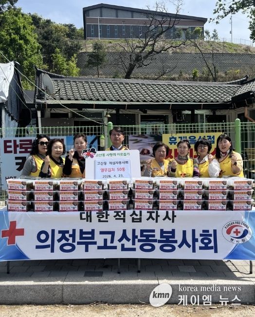 (케이엠뉴스) 의정부시 고산동주민센터는 4월 23일 고산동 적십자봉사회(회장 이미애)가 직접 만든 열무김치 50통을 취약계층을 위해 전달했다고 밝혔다.