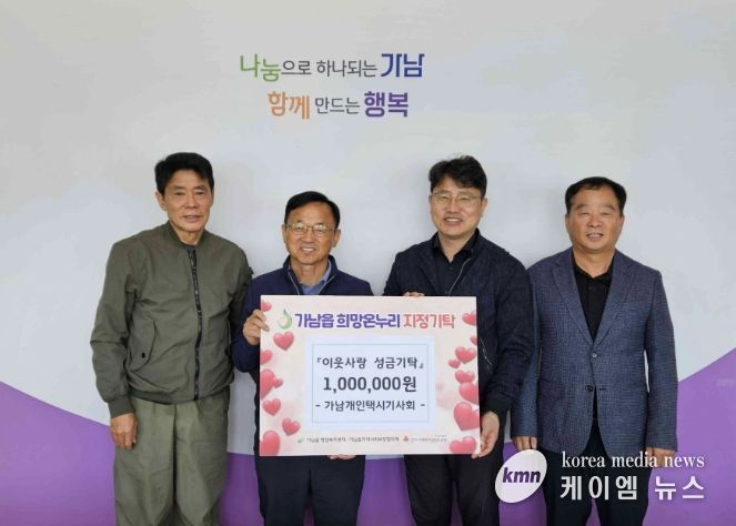 (케이엠뉴스) 가남개인택시기사회는 지난 24일 가남읍 행정복지센터를 방문해 관내 취약계층을 위한 이웃돕기 성금 100만 원을 기탁했다.