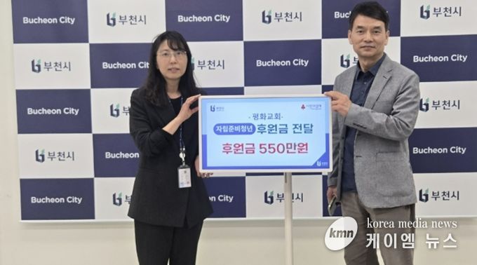 (케이엠뉴스) 부천시는 지난 24일 중동 힐스테이트 프로그램실에서 ‘평화교회 자립준비청년 돕기 후원금 전달식’을 열었다. 이번 전달식은 평화교회가 지역 내 아동복지 향상과 나눔 문화 확산을 위해 마련됐다.