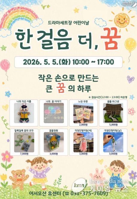 이번 프로그램은 어린이날을 기념해 아이들이 다양한 체험활동을 통해 자신의 생각과 꿈을 자유롭게 표현할 수 있도록 마련됐다. 드라마세트장과 어서오산 휴센터(休) 공간을 활용해 창의적이고 감성적인 체험 콘텐츠를 선보일 예정이다.