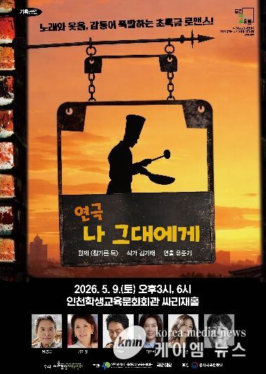 (케이엠뉴스) 인천광역시교육청학생교육문화회관은 5월 9일 대공연장 싸리재홀에서, 중년 부부와 가족의 애환을 그린 기획공연 ‘나 그대에게’를 개최한다.