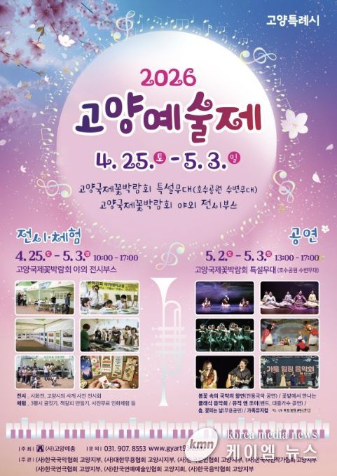 (케이엠뉴스) 고양특례시의 봄을 수놓는 지역 예술 축제 ‘2026 고양예술제’가 오는 5월 3일까지 고양국제꽃박람회 특설무대와 야외 전시부스에서 개최된다.