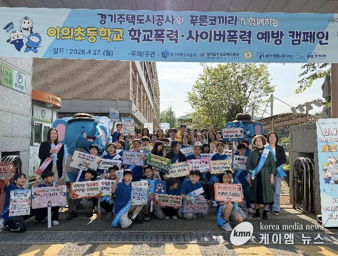 이날 캠페인에는 GH 임직원을 비롯해 수원시교육청 장학사, 이의초 교직원 및 학부모회, 학생, 푸른나무재단 관계자가 함께했다. 참가자들은 등교하는 학생들에게 사이버폭력 예방 스티커와 기념품을 나눠주며 비폭력 문화 확산을 위한 메시지를 전달했다.