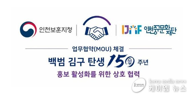 (케이엠뉴스) 국가보훈부 인천보훈지청과 인천중구문화재단이 4월 27일 ‘백범 김구 탄생 150주년 홍보 활성화를 위한 업무협약(MOU)’을 체결했다.