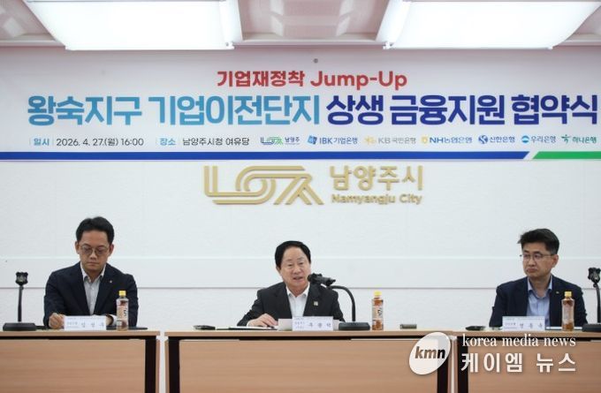 (케이엠뉴스) 남양주시는 27일 왕숙신도시 개발로 이전이 필요한 기업의 안정적 재정착을 지원하기 위해 ‘왕숙신도시 기업재정착 점프업(Jump-up) 상생금융’ 업무협약을 체결했다고 밝혔다.