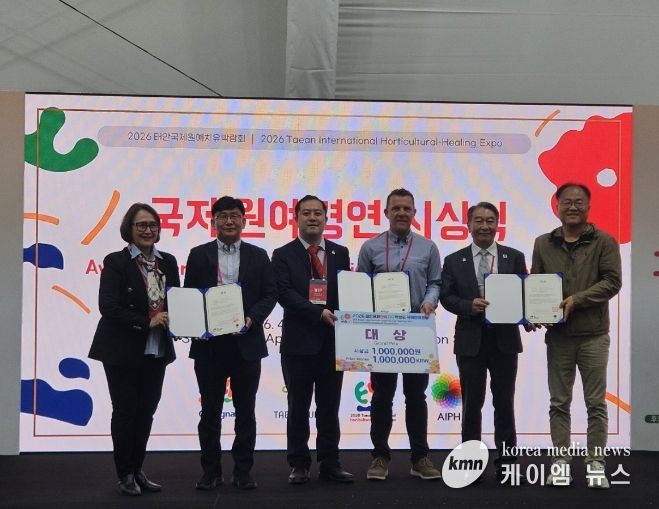 (케이엠뉴스) 충남도 농업기술원은 ‘2026 태안국제원예치유박람회 국제원예경연대회’에서 자체 개발한 국화 신품종 ‘엔젤루팡’이 대상의 영예를 안았다고 28일 밝혔다.