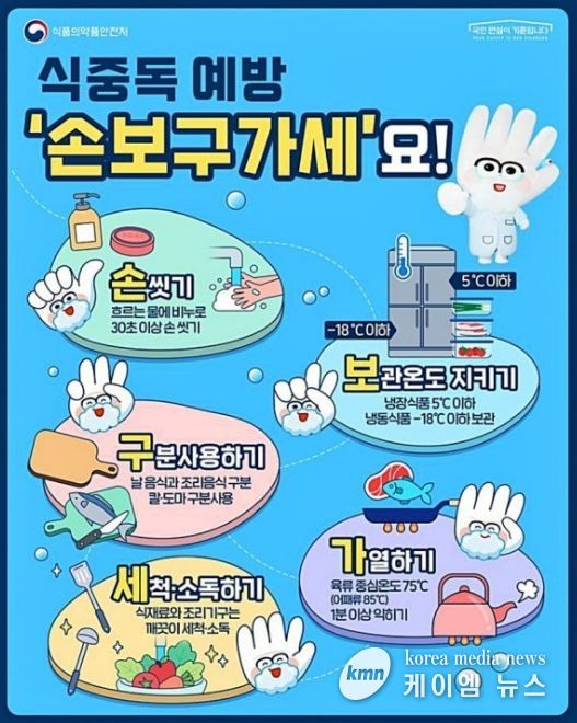 또한 육류는 75도, 어패류는 85도 이상에서 1분 이상 충분히 익혀 먹고 식재료와 조리기구는 깨끗이 세척·소독해야 하고 칼과 도마는 채소·육류·어류용으로 구분해 사용하는 것이 중요하다.