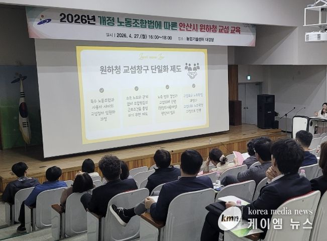 (케이엠뉴스) 안산시는 지난 27일 농업기술센터 대강당에서 5급 이상 간부공무원을 대상으로 원·하청 교섭 교육을 진행했다고 28일 밝혔다.