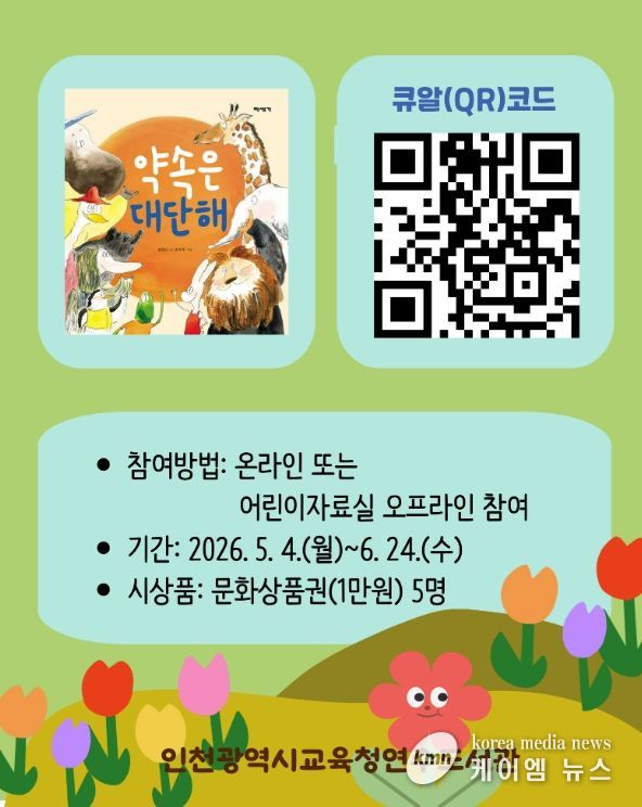 (케이엠뉴스) 인천광역시교육청연수도서관은 어린이들이 다양한 도서를 접할 수 있도록, 5~6월 어린이 독서퀴즈 ‘책 속에서 보물찾기’를 운영한다.